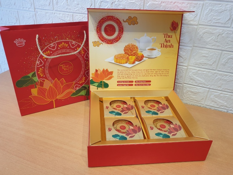 Chi tiết: Hộp bánh trung thu Trăng vàng Hồng ngọc An thịnh là sản phẩm thuộc bộ sưu tập bánh trung thu trăng vàng cao cấp của thương hiệu bánh trung thu Kinh Đô. Hộp gồm 4 bánh nướng cao cấp: Sò Điệp sốt X.O, Jambon Ngũ hạt, Thịt Xông khói, Đậu Xanh Hạnh nhân.