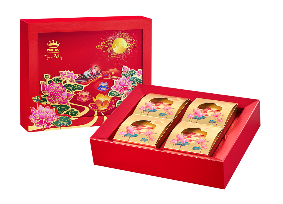 Hoa Sen, là biểu tượng văn hóa truyền thống quen thuộc với mỗi người Việt Nam chúng ta. Hoa sen tượng trưng cho sự thuần khiết, nghị lực kiên cường. Hình ảnh những bông hoa sen nở rộ, e ấp dưới ánh trăng vàng, ấm áp như lời nguyện cầu bình yên, hạnh phúc đong đầy cho mỗi chúng ta khi tết Trung thu về. Như đóa sen thanh thoát nghiêng mình trong sương mai, lời chúc yên ấm được gửi gắm trong hương vị tinh túy của Trăng Vàng Hồng Ngọc. Từ Sò Điệp Nhật, quà quý của biển khơi đến Jambon Ngũ Hạt hài hòa, Thịt Xông Khói phảng phất nét Tây phương, Đậu Xanh Hạnh Nhân truyền thống mà vẫn mới lạ, mỗi chiếc bánh trở thành một mảnh ghép cho bức tranh thu an bình, thịnh vượng.