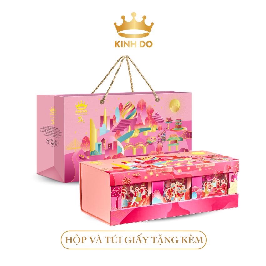 Hộp Bánh Trung Thu Kinh Đô như ý – mini hồng và xanh là sự hòa quyện khéo léo giữa bánh nướng đậm đà nhân thập cẩm, gà quay với đậu xanh, đậu đỏ ngọt bùi. Các vị bánh truyền thống cùng kết hợp với bao bì phá cách, trẻ trung nhiều màu sắc sẽ là món quà biếu tặng mang đậm chất sáng tạo và mới mẻ, thêm lựa chọn thú vị cho khách hàng mùa trăng đoàn viên tháng 8.