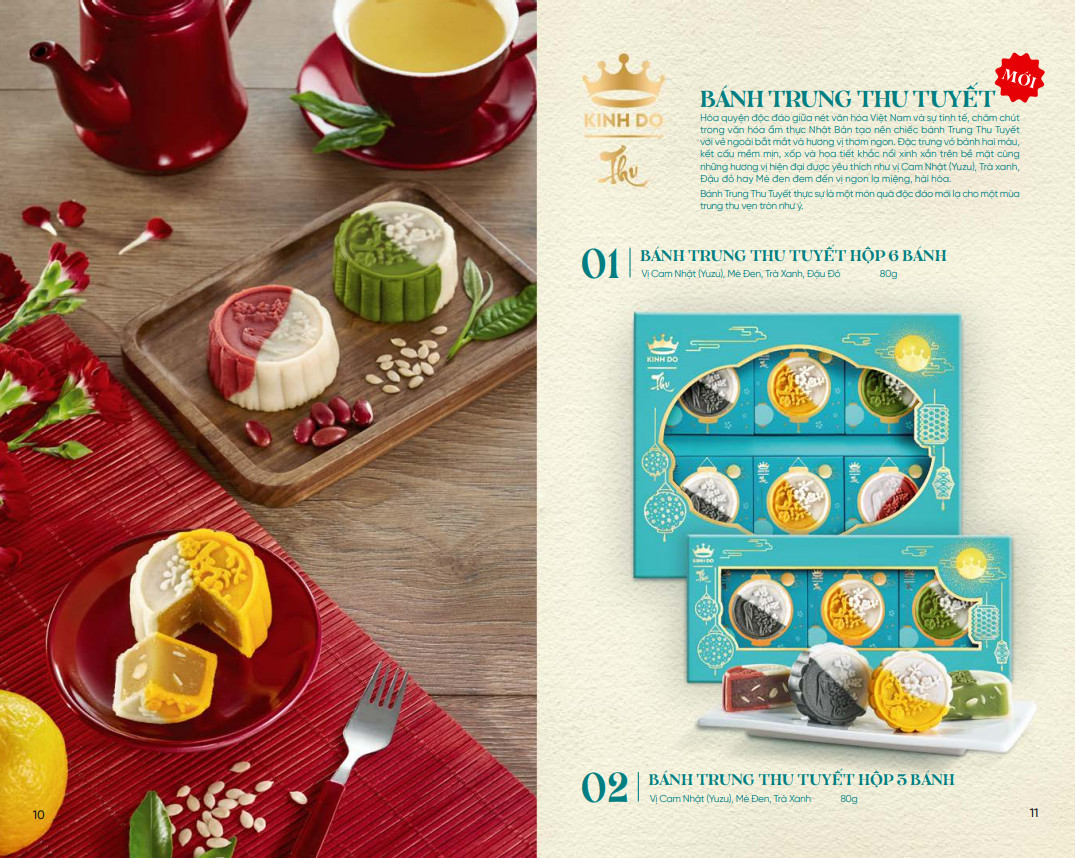 Bánh trung thu tuyết là sản phẩm bánh trung thu hoàn toàn mới của thương hiệu bánh trung thu Kinh đô trong mùa trung thu năm 2022. Bánh trung thu tuyết là sự hòa quyện độc đáo giữa nét đặc sắc của văn hóa Việt Nam và sự tinh tế, chăm chút trong văn hóa ẩm thực Nhật Bản để tạo nên chiếc bánh trung thu tuyết với vẻ bề ngoài bắt mắt cùng hương vị thơm ngon.