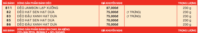 Bảng giá sản phẩm khuyến nghị của nhà sản xuất bánh trung thu Kinh đô cho dòng sản phẩm bánh nướng 2 trứng đặc biệt