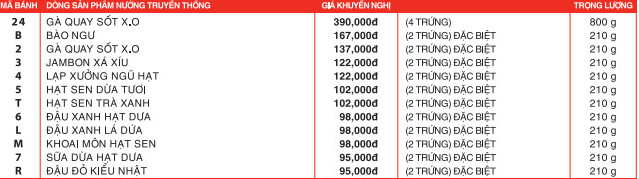 BẢNG GIÁ BÁNH TRUNG THU KINH ĐÔ NĂM 2022