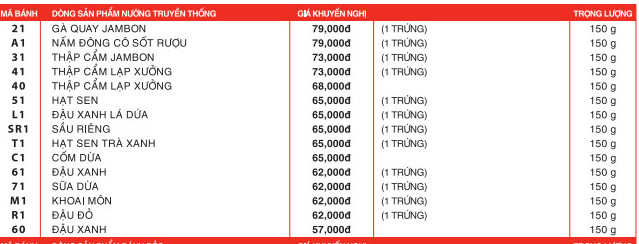 3.Báo giá bánh trung thu nướng 150gr